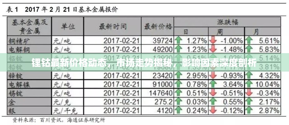 随着新能源市场的蓬勃发展,锂钴等关键金属的价格波动备受关注,本文将为您带来锂钴今日价格的最新消息,分析市场走势及其影响因素。